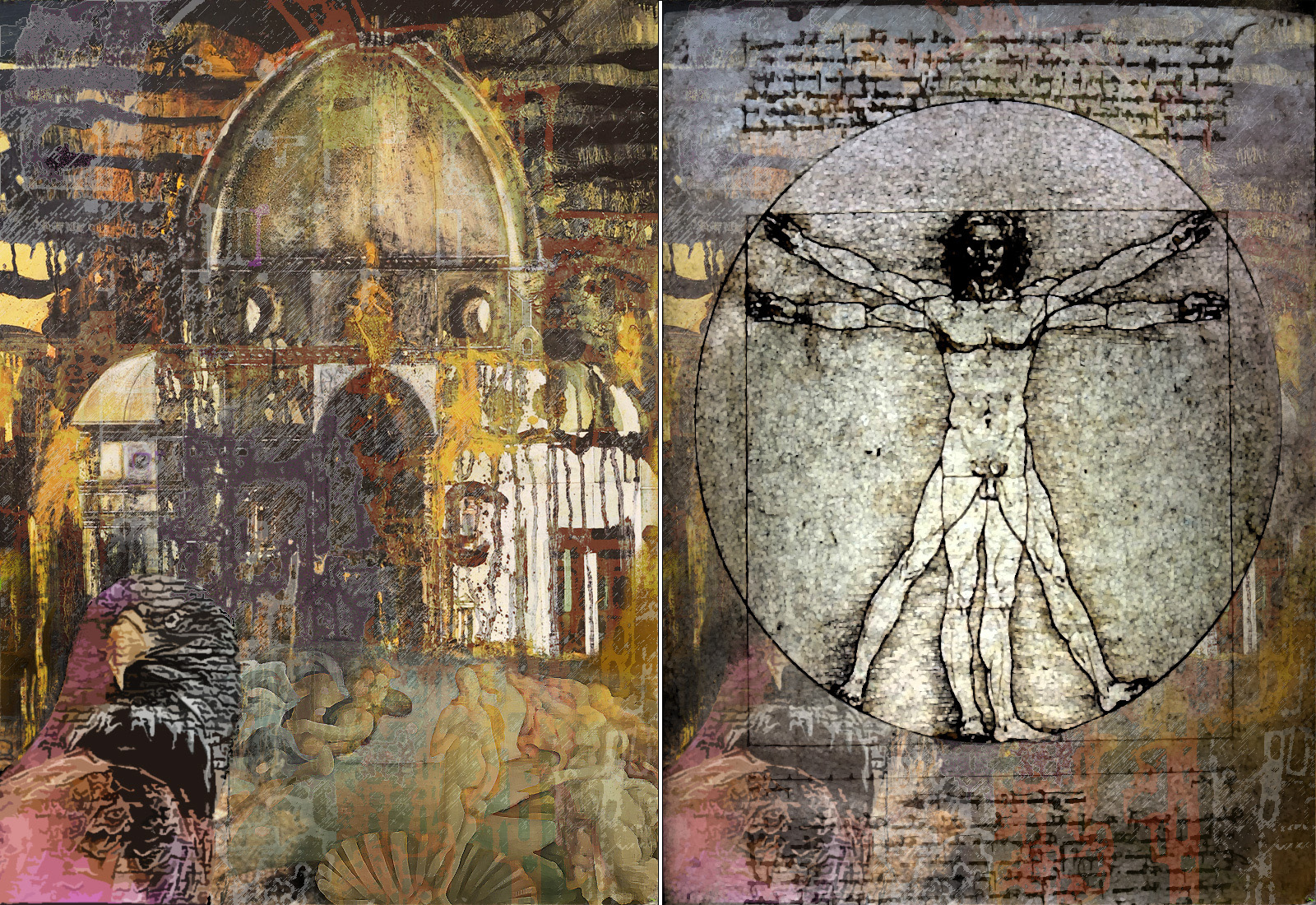 Santa Maria del Fiore erscheint hier wie ein Echo vergangener Zeiten. Die Kuppel steht als stiller Zeuge menschlicher Träume und Irrtümer. Schichten von Farbe, Kratzern und Fragmenten schreiben eine neue Geschichte, vom Menschen in seinem reflektierten Sein.