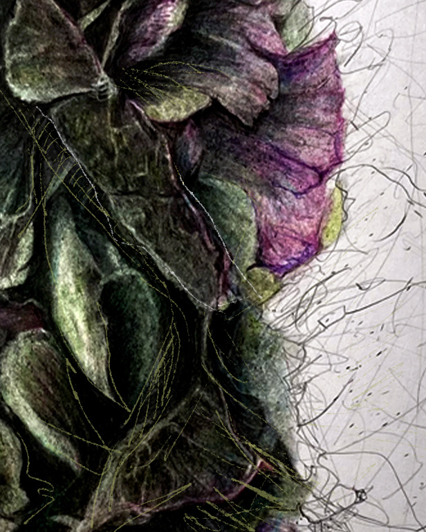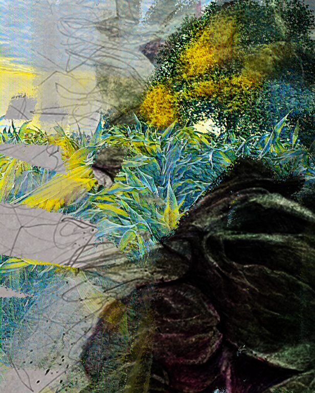Im Spannungsfeld von surrealer Bildsprache und organischer Struktur öffnen sich mystische Bildwelten. Fotografie, Malerei und digitale Zeichnung verschmelzen zu inneren Landschaften. Nicht das Sichtbare steht im Vordergrund, sondern das Empfundene. Dunkle Tiefe trifft auf flüchtendes Licht. Die Fläche wird zum Resonanzraum zwischen Traum und Erinnerung. Anklänge an den Surrealismus klingen leise nach. Bezüge zu Max Ernst, Joan Miró und Mary Carrington bleiben atmosphärisch spürbar. Kontrolle und Auflösung halten sich in einem fragilen Gleichgewicht.