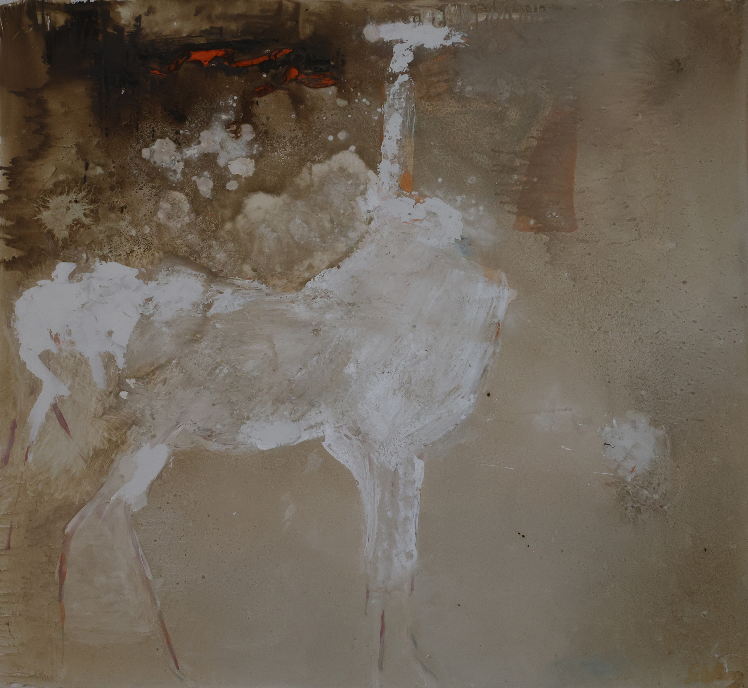 The use of natural materials such as sand and soil adds an organic and earthy quality to the piece, while the oil pigments provide a sense of depth and richness. The mixed media technique creates a visually striking and thought-provoking work that invites the viewer to reflect on the themes of resilience and hope.“